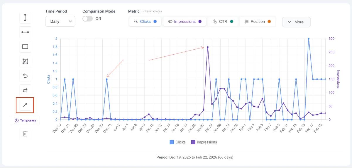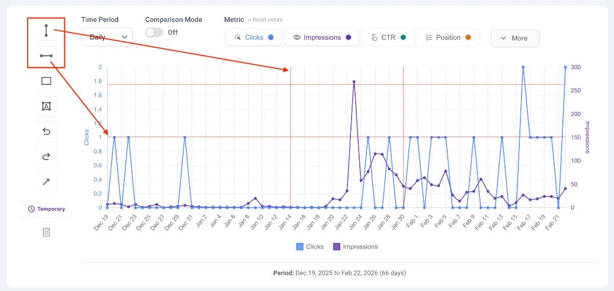 - SEO Use Case: Add context to your lines and arrows (e.g., writing "March Core Update" next to a vertical line).